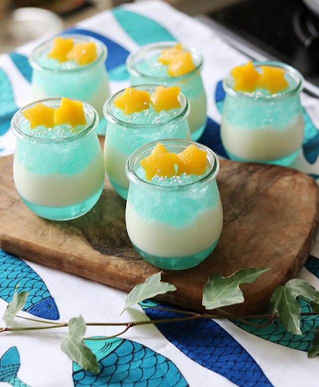 かき氷シロップとアガーで作る プルプル食感 ブルーハワイ七夕ゼリー レシピ 七夕ゼリー アガー ゼリー